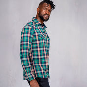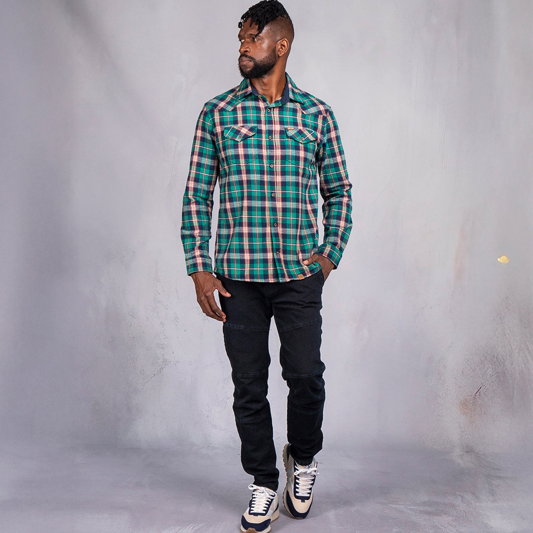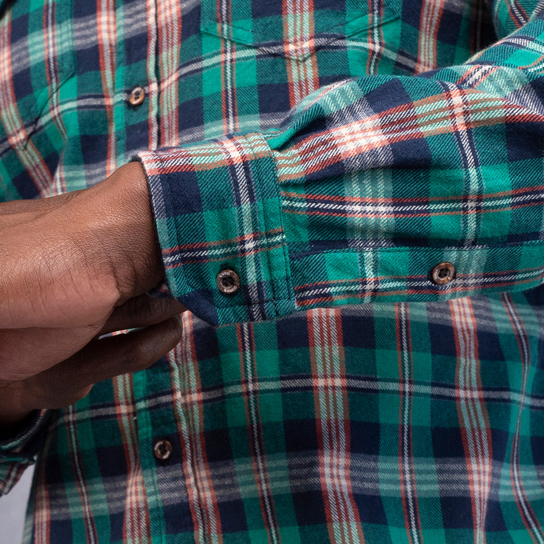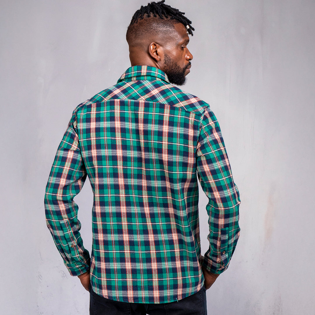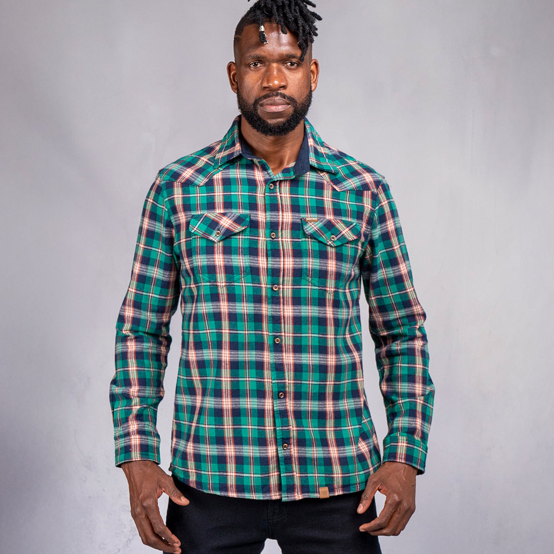 The Drill Flannel shirt is made from imported 100% cotton fabric. It has a contrast corduroy fabric in the neck and cuff.