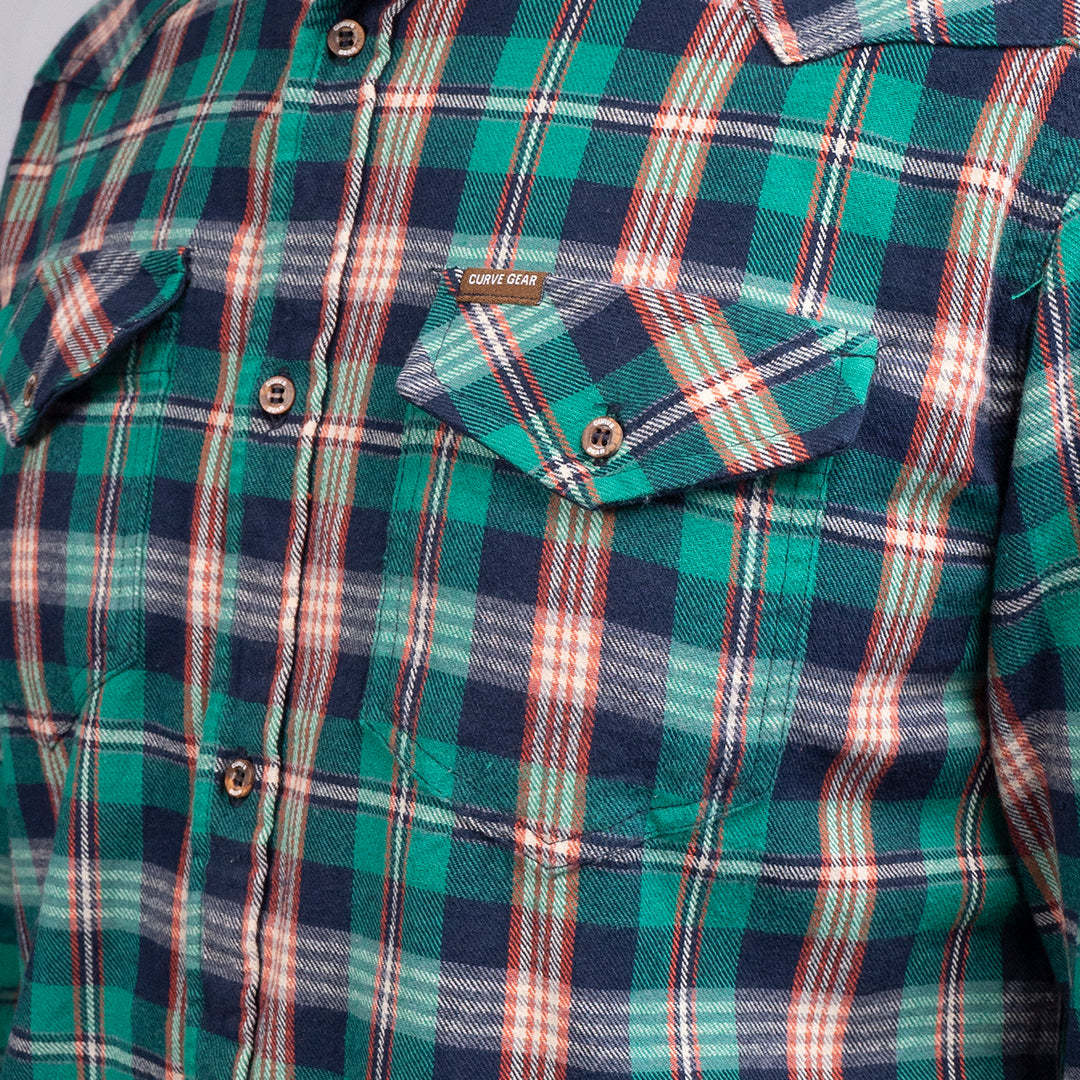 It also features contrast coloured stitching on the bar tacks on the left chest pocket, on the side seam and the bottom button-hole. Branded Curve Gear buttons and a leather tab on the hem, complete the garment.