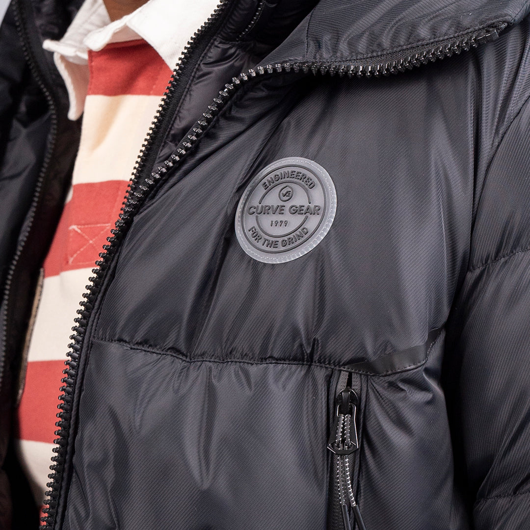 It has unique Curve Gear branding featuring a badge on the front chest and embroidery on the inside zip placket.