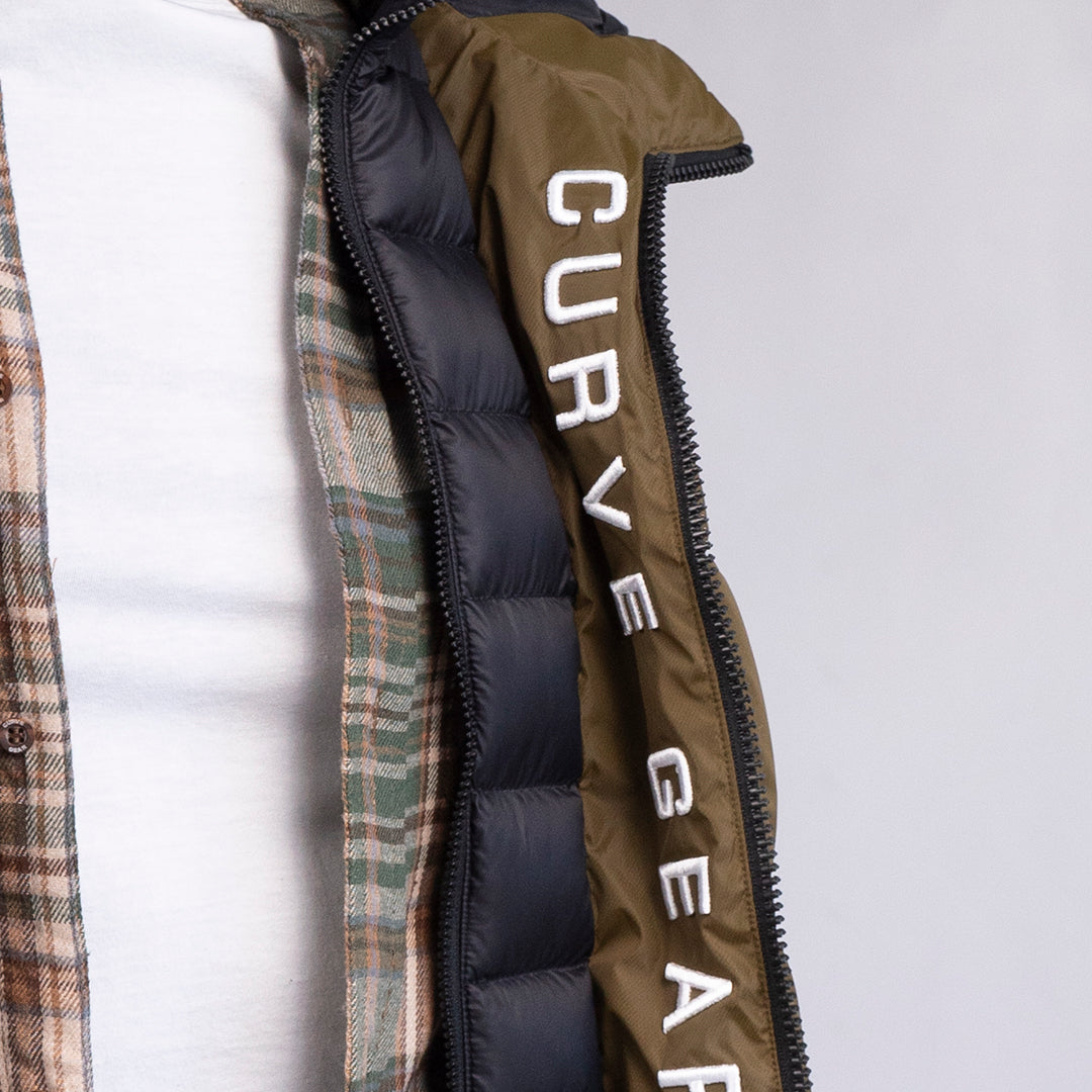 It has unique Curve Gear branding featuring a badge on the front chest and embroidery on the inside zip placket.