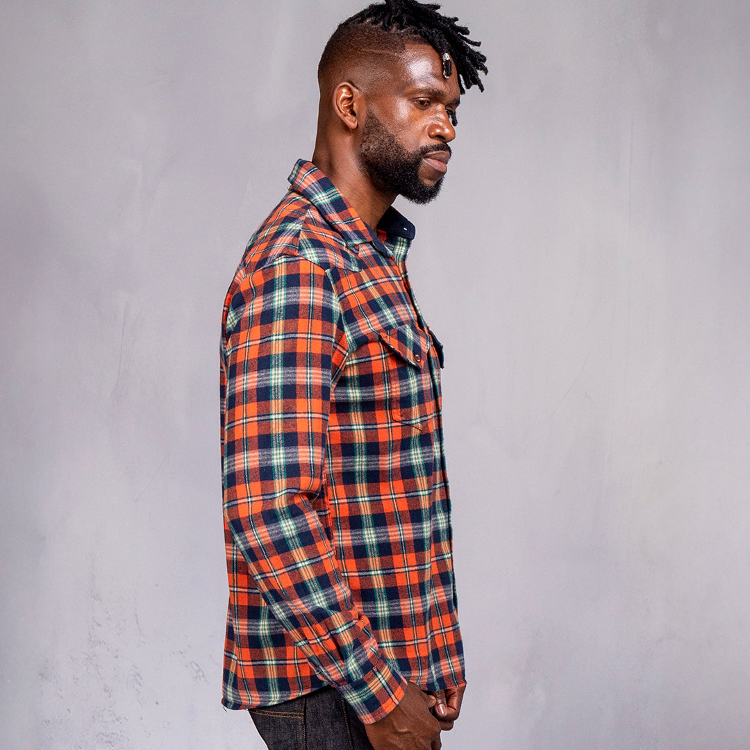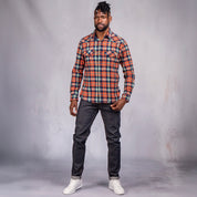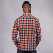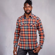 Drill Flannel Long Sleeve Shirt Orange Navy Check