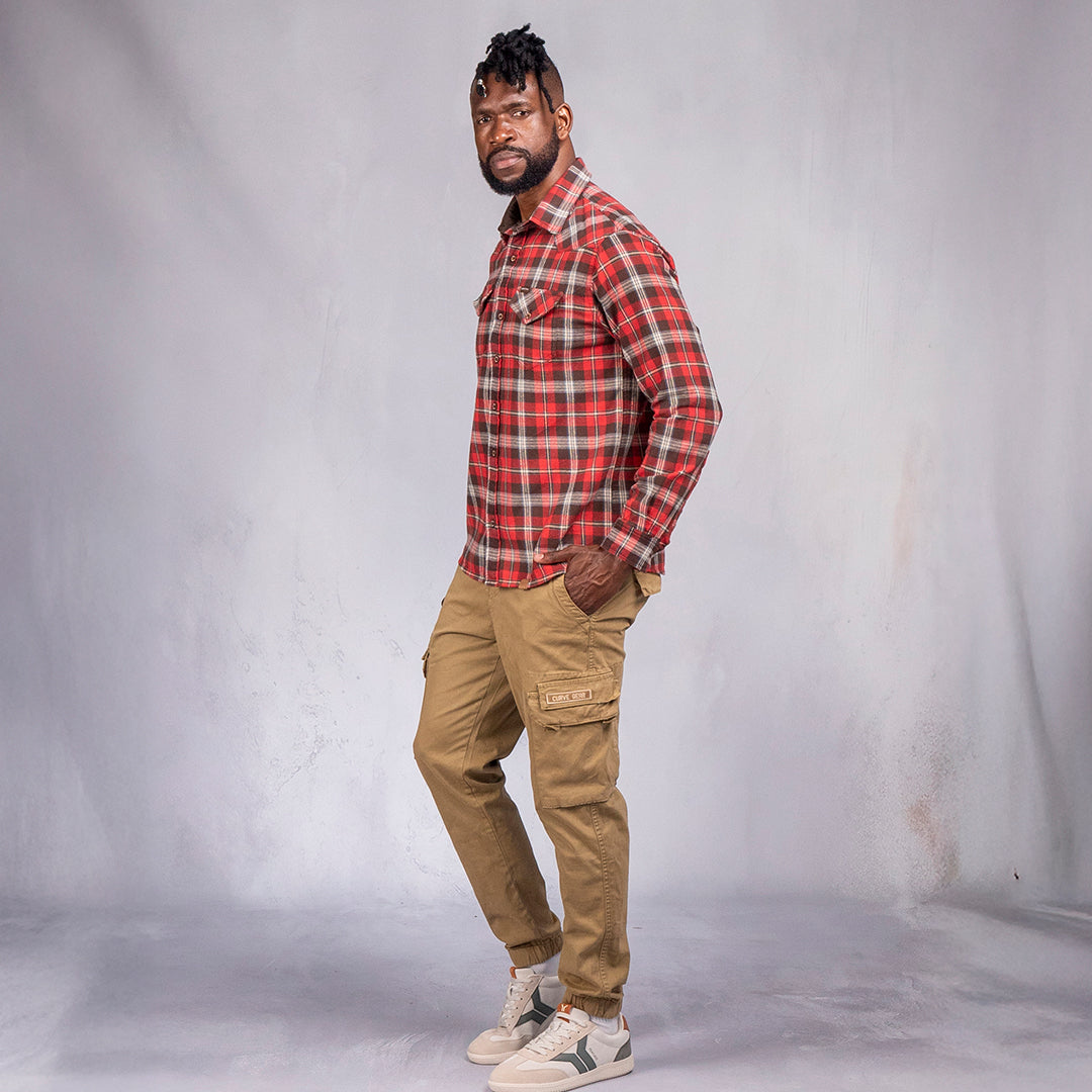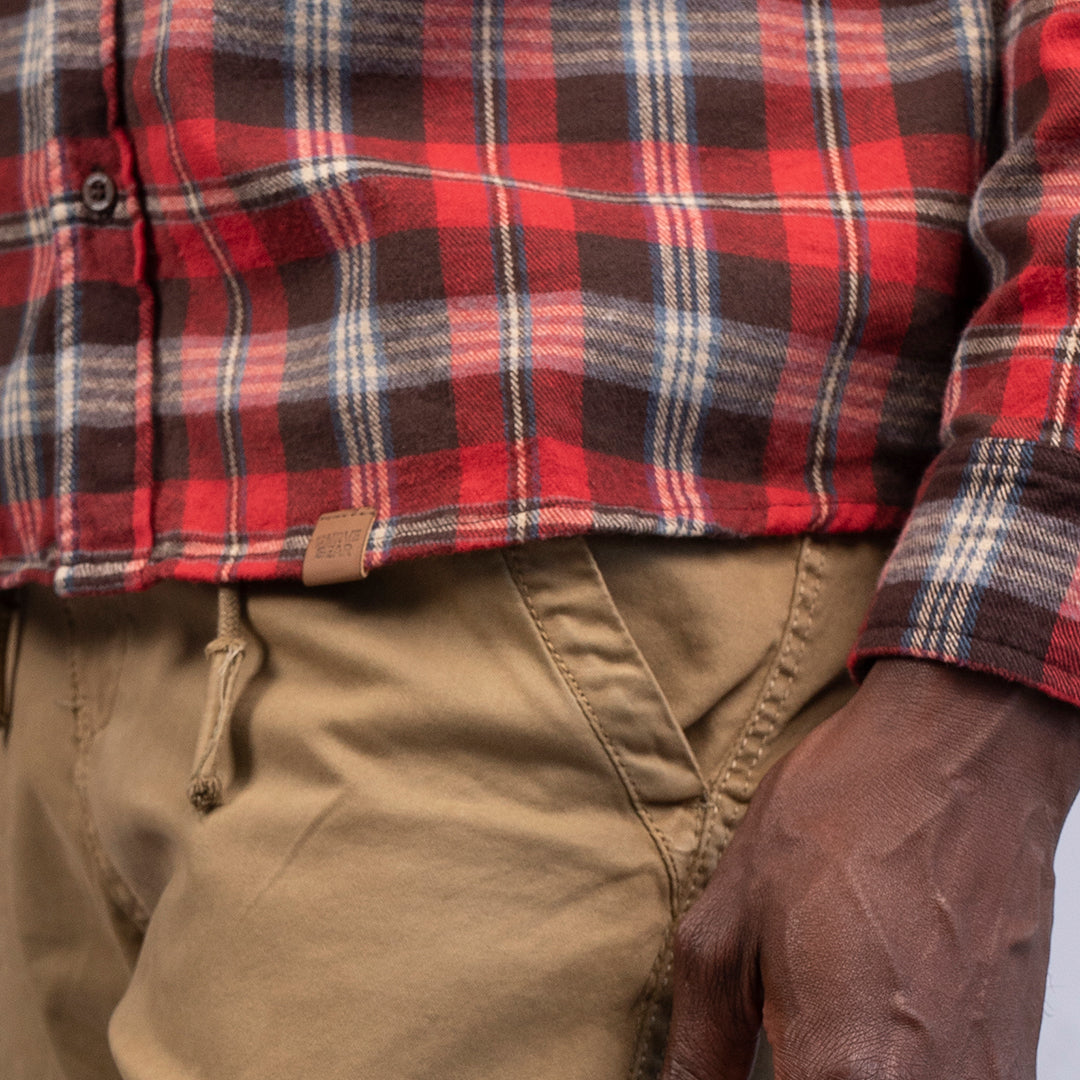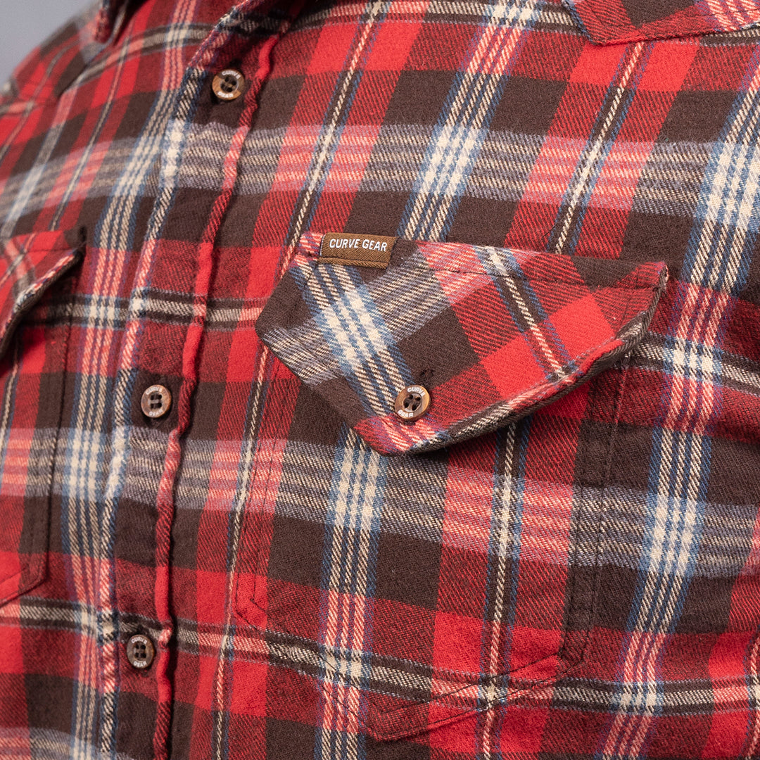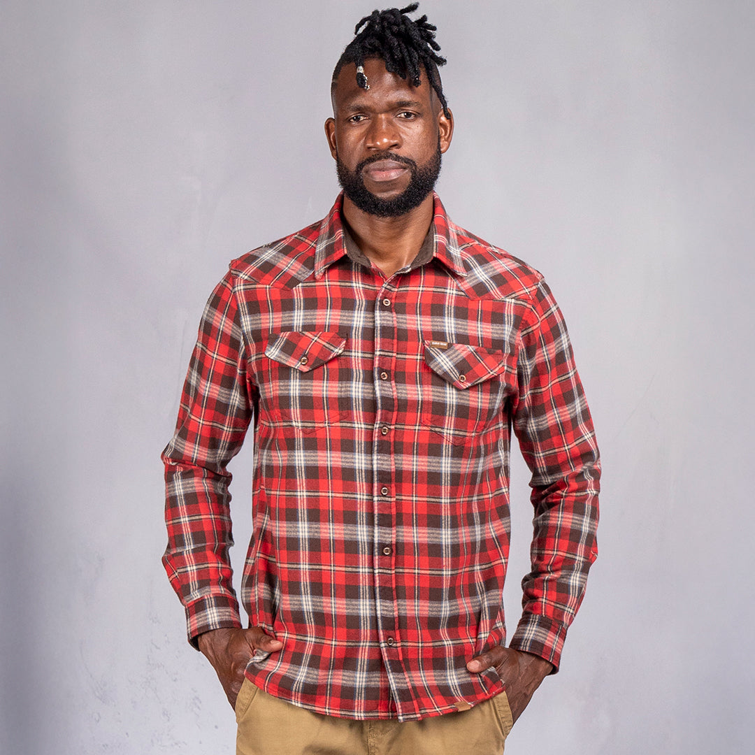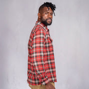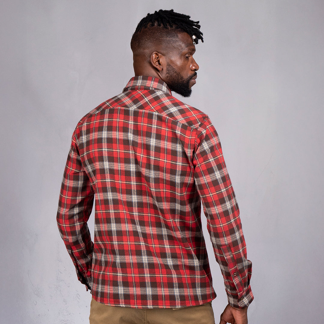 Drill Flannel Long Sleeve Shirt Red & Brown Check