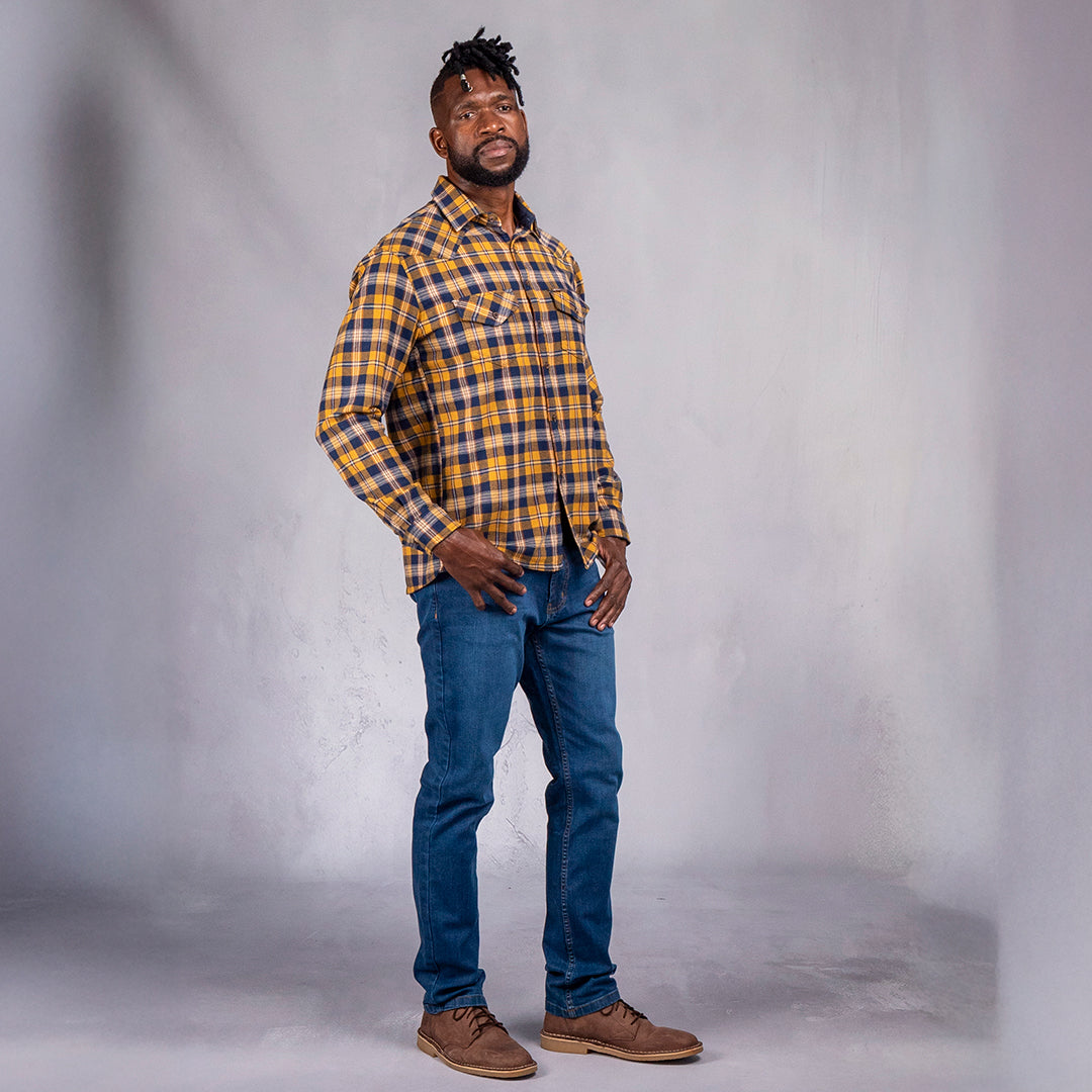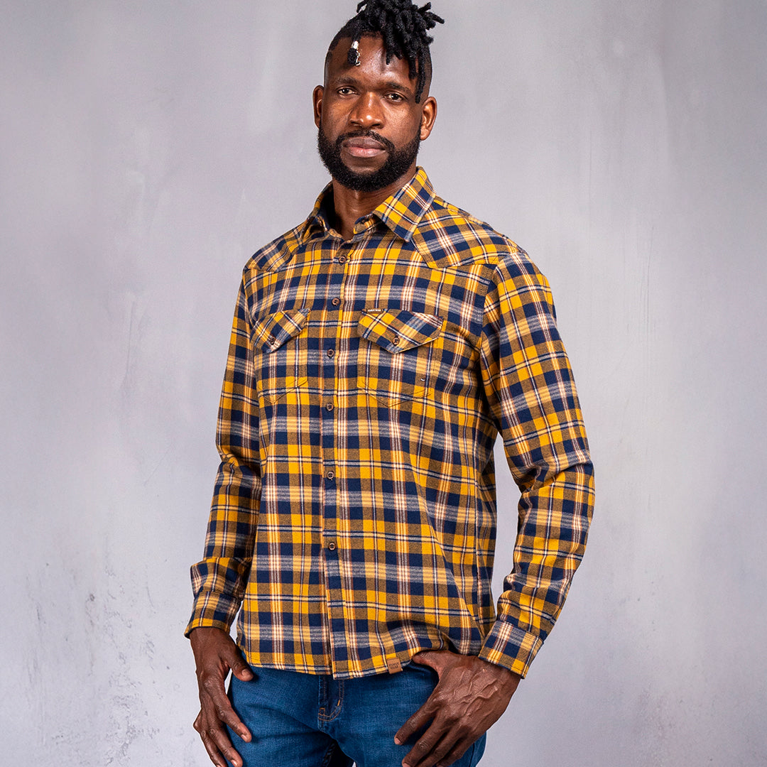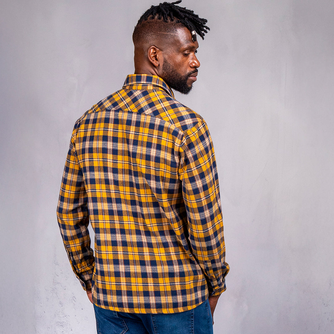 Drill Flannel Long Sleeve Shirt Mustard & Navy